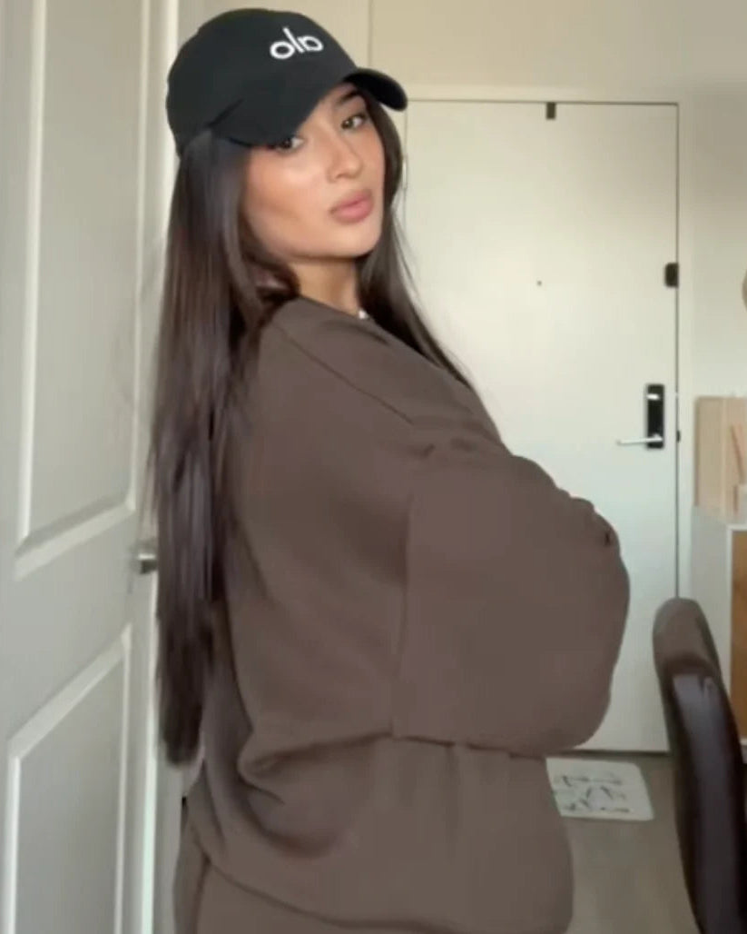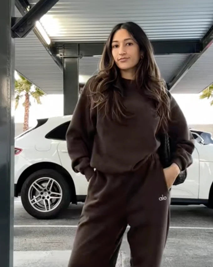 "I’m really happy with this set. The material is breathable but still keeps me warm on cooler days. The design is simple yet trendy, making it easy to pair with other pieces in my closet. It fits true to size and keeps its shape nicely all day."