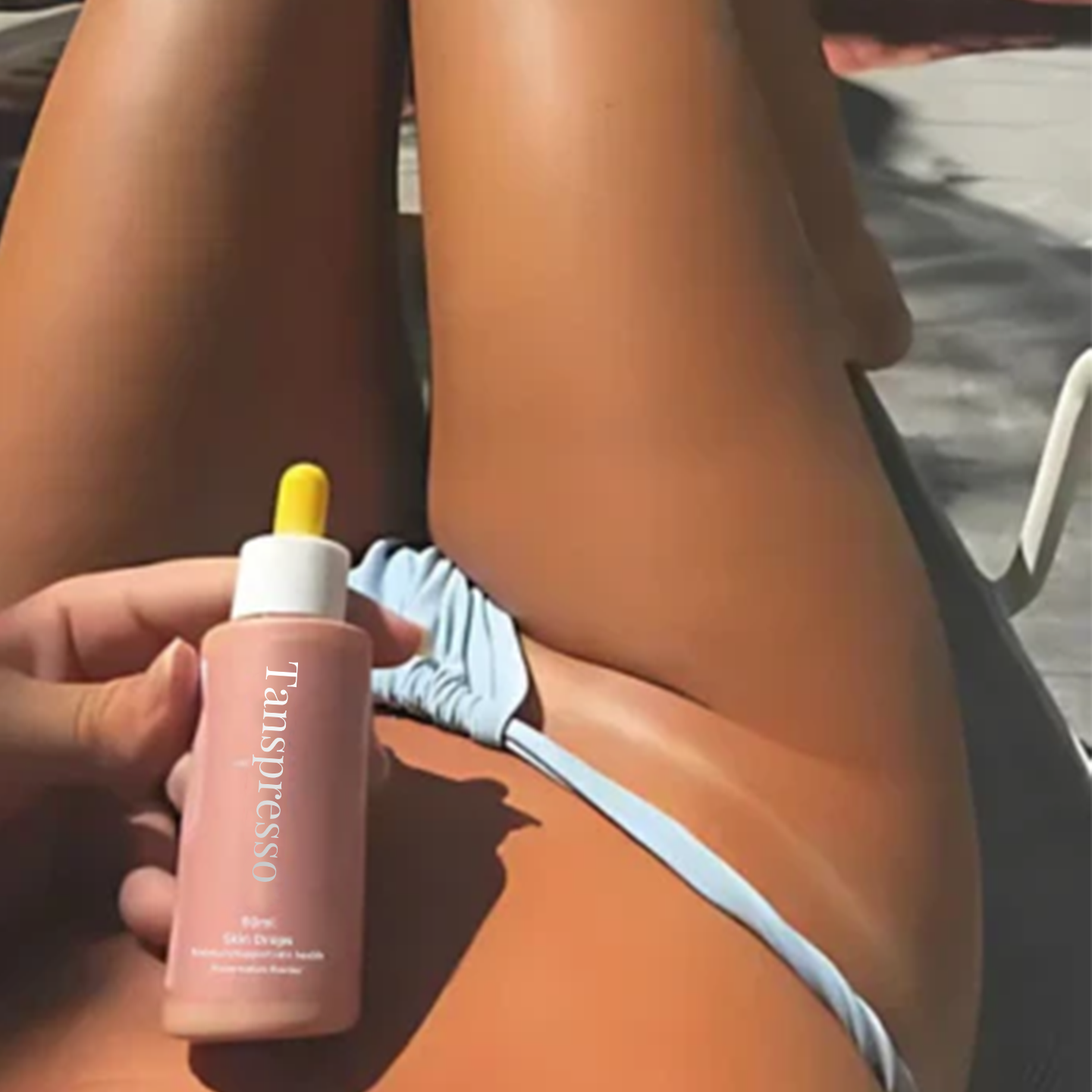 Tanspresso™ Tanning Drops deliver a radiant, golden glow from within—giving you a sun-kissed look no matter the season.